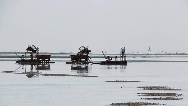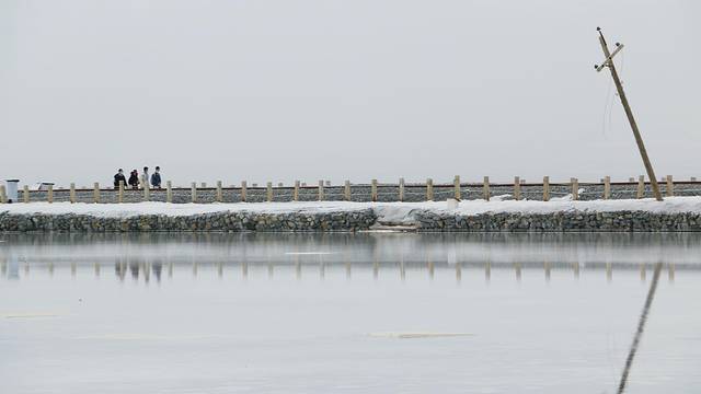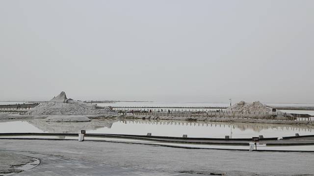 进入景区最先看到的是一片滩涂,由于没有蓝天的映衬,显得那一片非常荒凉,就像是在雪原上一般。