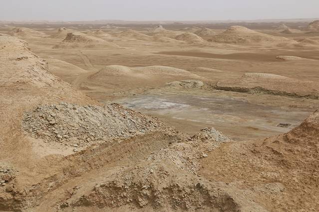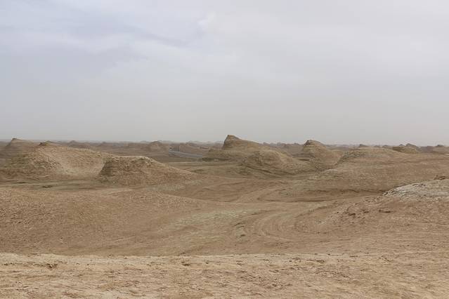 登高望远,雅丹地貌确实非常神秘而震撼。目之所及(朝着没有游客的那一边),都是相似却不相同的土墩墩,荒凉得像是来到了外星球。