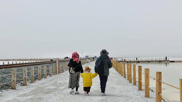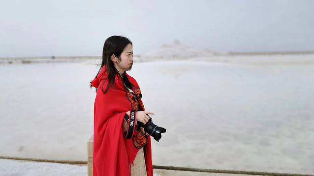 第二天一早就慕名来到了有着“天空之境”之称的茶卡盐湖。只可惜天公依旧不作美,没有预期中的蓝天白云,只有阴沉沉的天气。阴天的茶卡盐湖没有宣传图里的那种通透感,反而有几分“荒野”的寂寥,也算是别有一番韵味。建议大家要带好墨镜🕶进去,整个景区白到晃眼,看久了眼睛很疼。盐湖里有不用拖鞋就可以拍到倒影的地方,但是如果想要走得远一些,背景更空旷一些,可能还是要下水,建议带一双拖鞋。