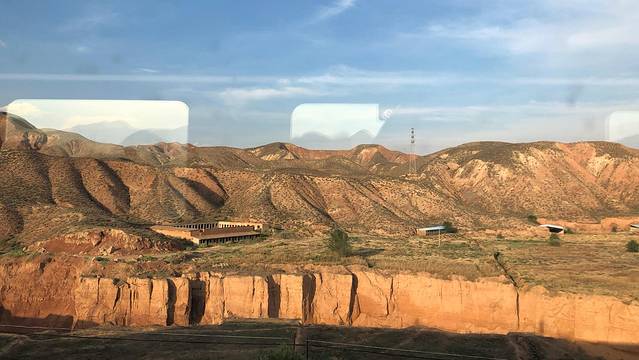 从机场坐城际列车赶往民宿的路上,遇见大西北的第一个日落