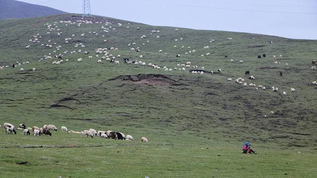 路边的牛羊满地跑,虽然和想象中的“风吹草低见牛羊”有些出入……