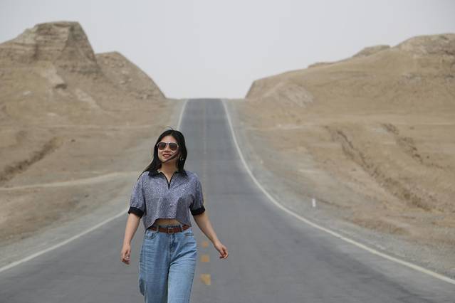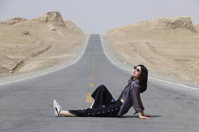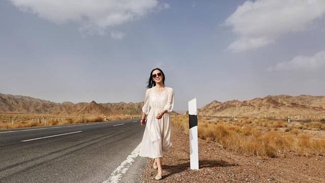 路边的里程牌,可以靠着、坐着、踩着凹出一系列姿势