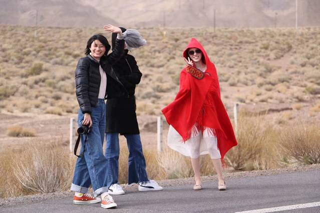 这一段路非常空旷且景色很好,我们在此处下车拍照。路上有车,而且开的飞快,要注意安全。
