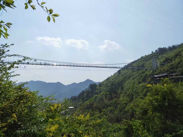 从阶梯出来,在前往凌云天桥的途中可以看到著名艺术家Colette Miller为景区留下的“天使之翼”,以红紫蓝为主色、黄色和金属色点缀的天使之翼和自然完美交融,有兴趣的朋友可以在这拍照打卡。再往上走一会儿就到凌云天桥了,玻璃桥长300余米,相对高度约150米,经历前后四年的设计论证和施工建造,展现了现代工程和大自然景观的巧妙融合。踏走凌云天桥上,垂云通天河美景和远处景观净收眼底,仿佛漫步云端,有惊无险。