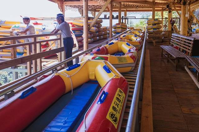 在这条地下河里,还隐藏着一个升船机,由特别设计的升船设备将游客连人带船升至8米高落差的二级河道,特别惊险刺激。船体一路上升的过程中,霓虹灯光变换,就好像走进了一条时光隧道,酷炫又神奇。