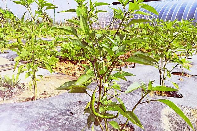 夏日的采薇园生机勃勃,室外的菜地里西蓝花大大的菜叶中花朵露出了头,朝天椒茁壮的枝蔓上小巧玲珑的果实也在孕育生长。