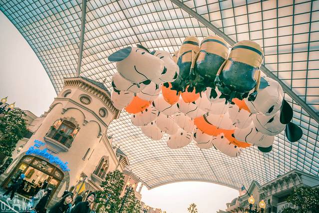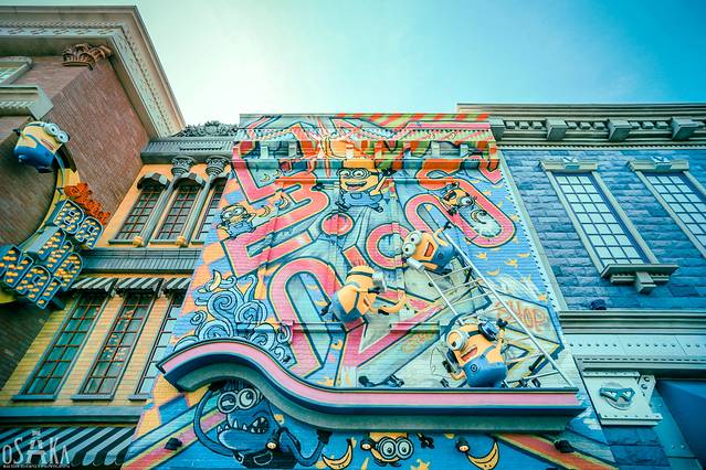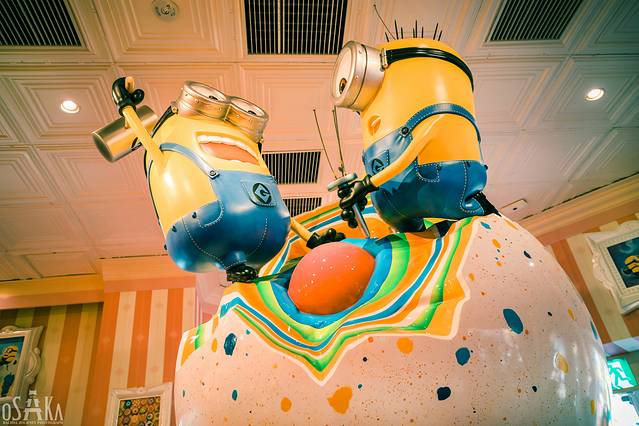 建筑上的涂鸦,随处装点的小黄人雕塑,让这个区域充满了可爱的气氛。
