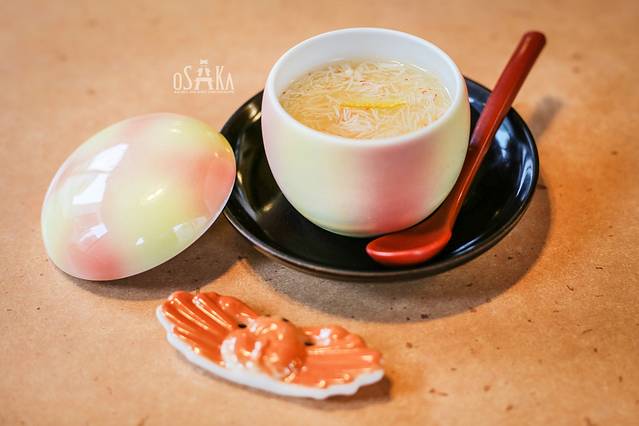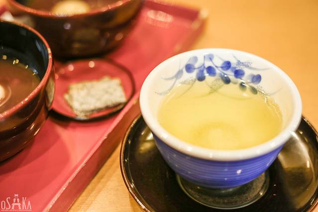 虽然是摆放了两碗,但实际上份量是一碗,每碗只有一半。两个半碗的红豆汤、一片盐海带、一杯茶,这样一份是一套,800円,折合人民币50元。这个价格真心不便宜,都够吃一碗拉面了。