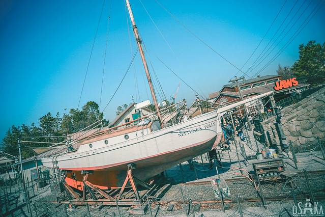 紧挨着哈利波特的魔法世界的是小镇亲善村,该区域的主题是以电影《大白鲨》为主。我们玩了大白鲨,坐着船航行在平静的港湾上,然后在不经意间遭遇巨大食人鲨的袭击。