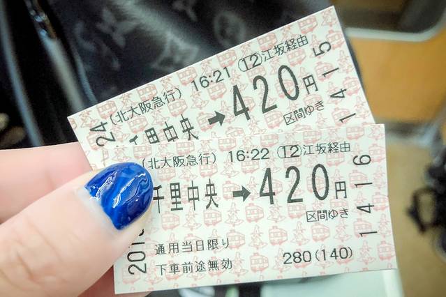 然后徒步4分至千里中央(北大阪急行)的车站,坐北大阪急行电铁?なかもず行,坐11站到心斋桥下,420円。