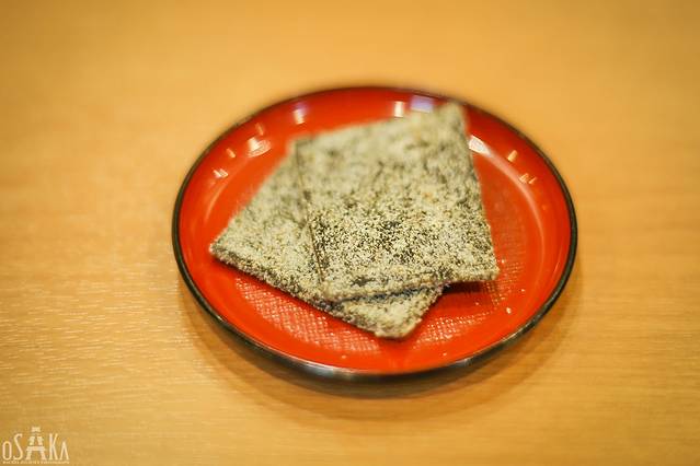 因为红豆汤很甜,为了给顾客平衡一下口味,店里还给每人准备了一片盐海带,这海带也是经过严格挑选的北海道道南产的天然海带。但是味道实在是咸得受不了,感觉是直接在吃盐啊!或许就是为了体现夫妻之间要甘苦与共吧!