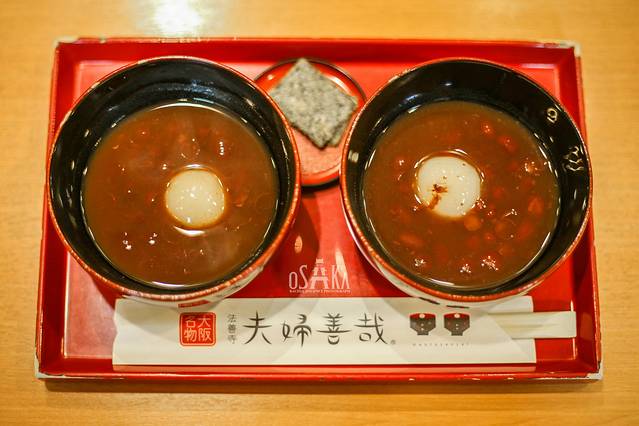 夫妇善哉创于1883年,历史非常悠久。它把一人份的红豆汤分成两碗,来比喻夫妻的关系非常好,因此就将夫妇善哉作为了店名。