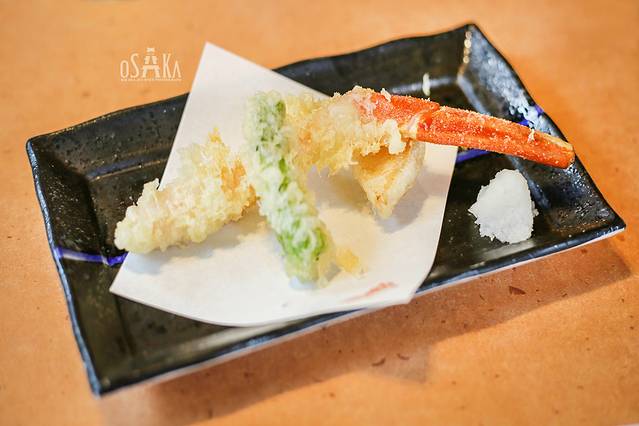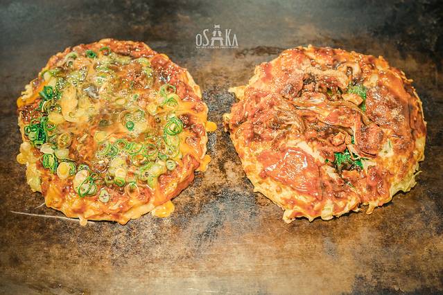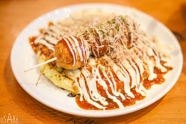 大阪烧是把和有高丽菜、肉类、海味、鸡蛋及其他配料的面糊,其他配料大多是猪肉、虾、鱿鱼等。然后放在热铁板上烧烤,烧好后形如煎饼,吃前再浇上特制的酱汁、美乃滋、柴鱼片和青葱海苔粉。