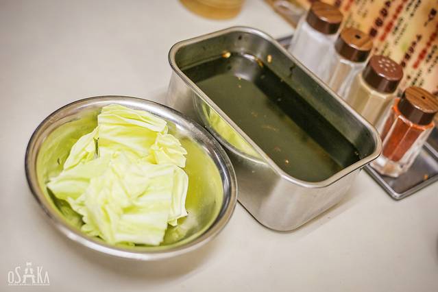 由于酱料是客人共同使用的,将吃过的炸串重新蘸酱会污染酱料。若想要重新蘸酱的话,可以使用尚未入口的卷心菜蘸酱,再淋到炸串上。食用卷心菜时,也请勿使用筷子,用手抓取再蘸酱食用。若想将卷心菜或油炸食品蘸盐食用,请将食物摆放在盘子上再撒盐。