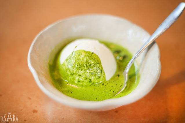 搭配的煎茶是京都南部的宇治茶,味道偏苦,应该是和盐海带一样的用途,突出甘苦与共。