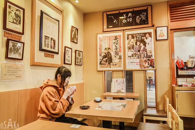 在店内展示着第三代的福人形,还有织田作之助的小说《夫妇善哉》的最初版,以及演员森繁久弥的亲笔签名。