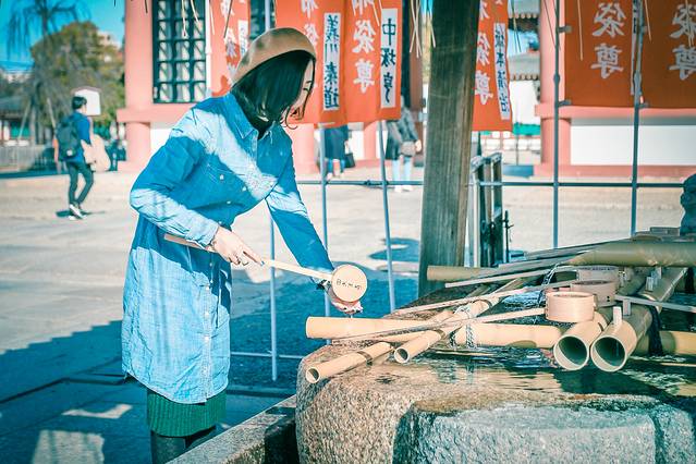 日本的寺庙在门口处一般都设置有手水舍,要做参拜神明以前的净身动作。相信大家也都知道这一点,具体的流程网上有很多讲解,可以在去之前了解一下。