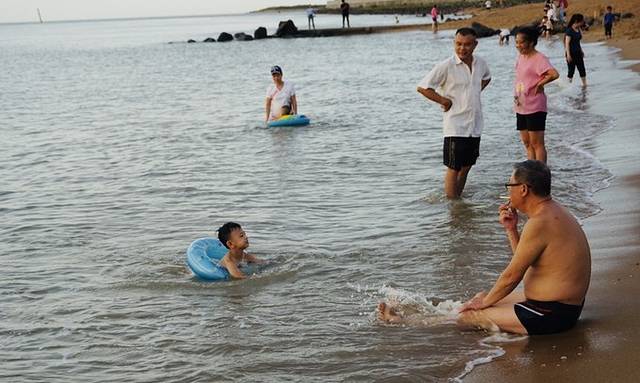 这两图,是 海口 港西部海面的照片。第一图,中间就是 海口 港的一个码头泊位,有一条船在停泊。 白沙 门海滩落日景色很美,有很多当地人在岸边游泳, 白沙 门公园里也有冲洗的地方,想游泳的话也可以提前准备泳衣免…