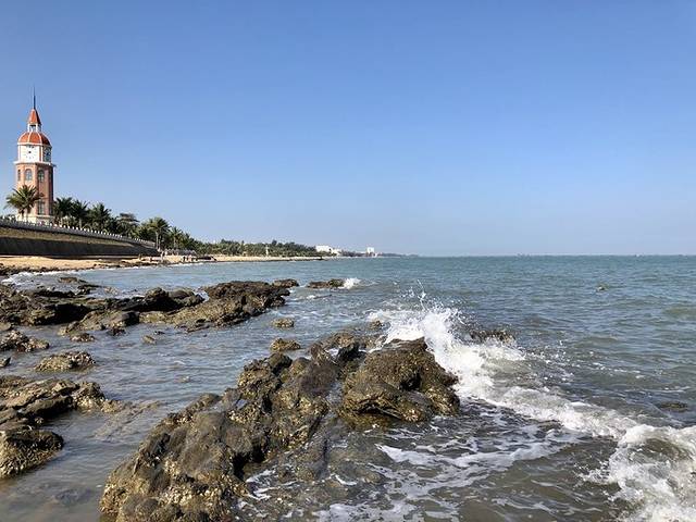 这两图,是西秀海滩景区的标志性建筑——观海台(观海楼)。