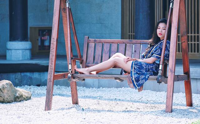 才进院门,就为里面如画的景色驻足,不忍打破这美如古画院落的宁静。融合了中式传统及仡佬族独特建筑风格,木质秋千,碎石铺地,浅色木门,火红的小枫树是院中最鲜艳的色彩。