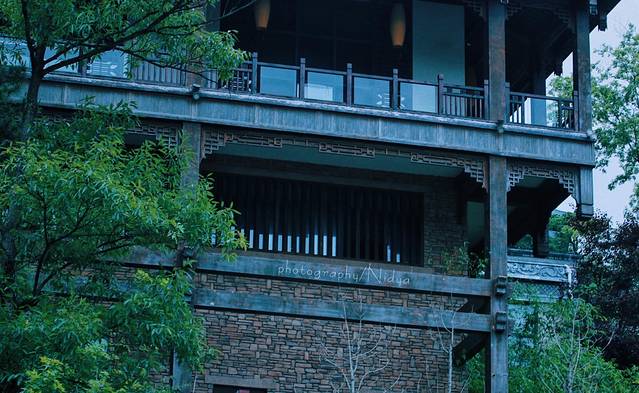 当地特色的仡佬族风格建筑配上精巧的灯罩,如同进入千与千寻的世界,意外遇到一个挂满氛围小灯的走廊,从雾气氤氲到满目星光,从幽静山林到梦幻璀璨,想起了小时候那个夏天,满城都是萤火虫的快乐,总是会有不一样的惊喜。
