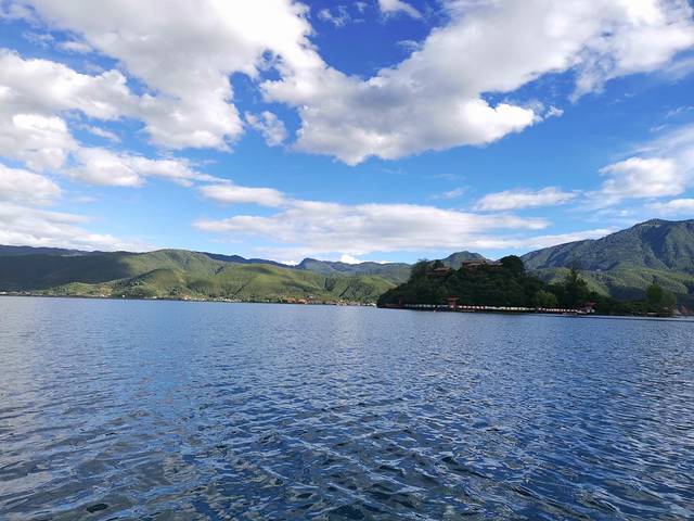 游完南诏风情岛(去了杨丽萍的太阳宫,但是那个艺术空间需要提前一天抢票才可以参观)。花50块钱租了一辆电瓶车开始游洱海,天气晴朗的洱海真的超级美。