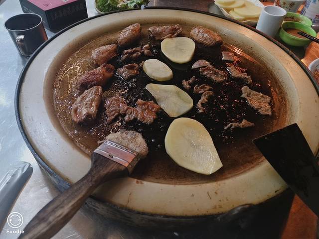 茄子蒜味比较重,牛肉还挺好吃的,老板现场教学了一下应该怎么烤