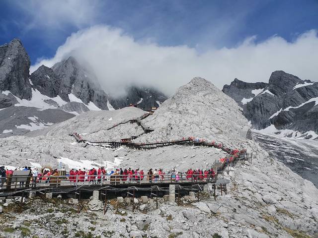 导游说不能按照1000米低6℃这么算,天气好的时候这个季节山上不冷(实不相瞒我就是这么算的hhh,然后我们信了,穿着牛仔外套就上去了,在4000多米吹大风的时候冻得手脚冰凉),其实不吹风的时候一点都不冷,带防寒服确实比较麻烦。
