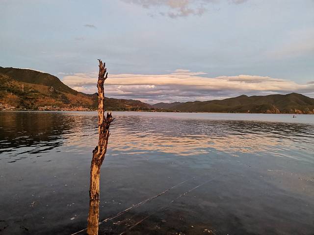 双廊有好多的客栈,街边上全是客栈,我们在网上随便选的这家是一个当地老奶奶开的,陈设都比较古老hhh,卫生间很小,就是奶奶的房间那种感觉,楼上有一个天台,阳台外面就是洱海,但是这片的水质不太好。