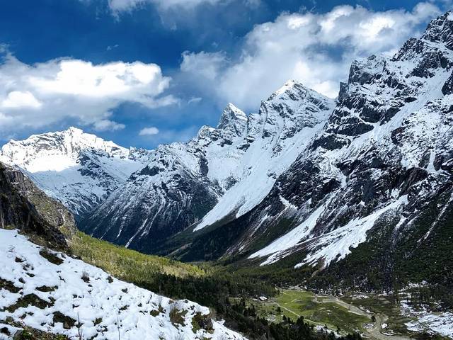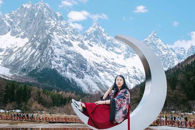 调整镜头的角度,以巍峨的雪山做背景,浮云就在头顶缓缓流过,如同坐在童话里。