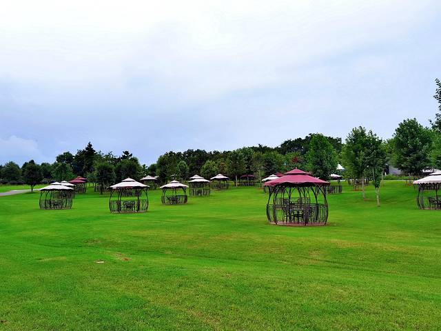 绿地是极开阔的。休息伞亭安置其间,航拍感觉应该不错,大王开始怀念他的小飞机。