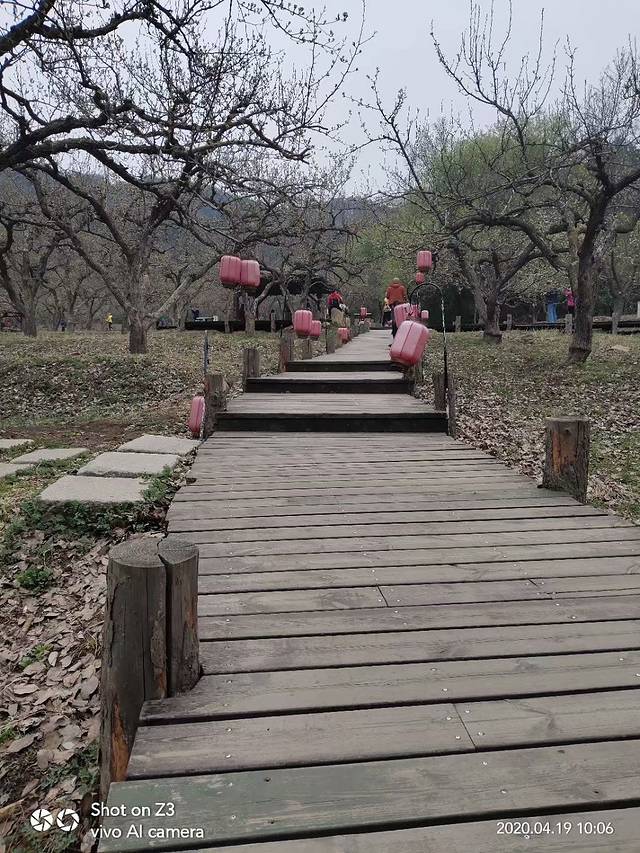 从千山正门广场开始,延步栈道向景区内步行,第一处景点便是“雨润梨园”,是千山景区内人工打造的一处以梨园为主题的小景区,每年五月中上旬,园内梨花竞相开放,千山也于此时举办梨花节。