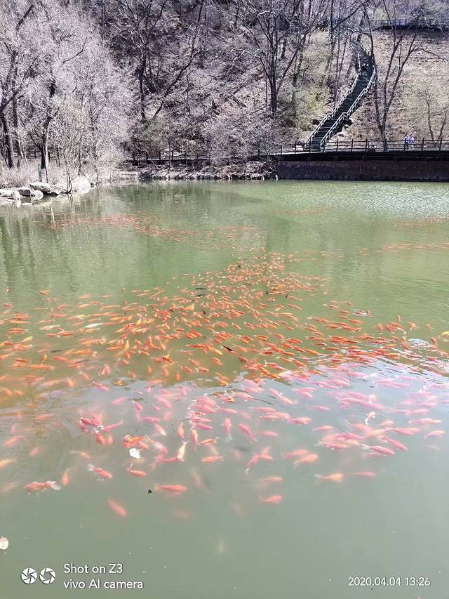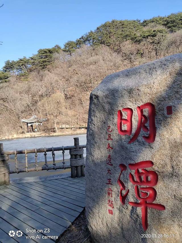 无量观广场左侧是千山景区内第一处大水潭名为明潭,水中游鱼众多,在明潭对面便是灵岩寺。