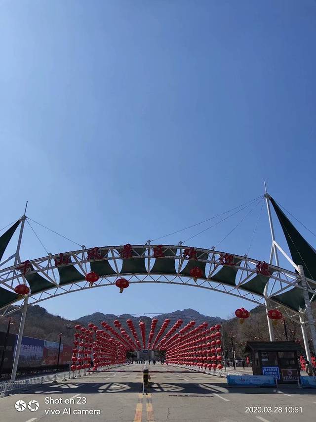 从“雨润梨园”景点继续向前走,是财神庙广场,此处是前往“天上天景区”的索道乘坐点。