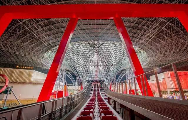 法拉利主题乐园,又名“法拉利世界”,坐落于阿布扎比的亚斯岛上,整个建筑项目斥资400亿美元打造,占地20万平方米,堪比7座足球场;其近20万平方米的铝合金屋顶耗材足以制造近16750辆法拉利车身。其建筑外形十分狂拽炫酷,犹如法拉利GT经典的流线车侧设计,从空中俯瞰就像一个外星飞碟;建筑顶部颜色则将“法拉利红”用到了极致,充满激情的红色几乎铺满了整个建筑的顶部;建筑顶部还镶嵌着直径达66米的法拉利的盾形logo,时刻在传达着“天地之间,任我驰骋”的豪迈之气,光看图片就令人兴奋不已。