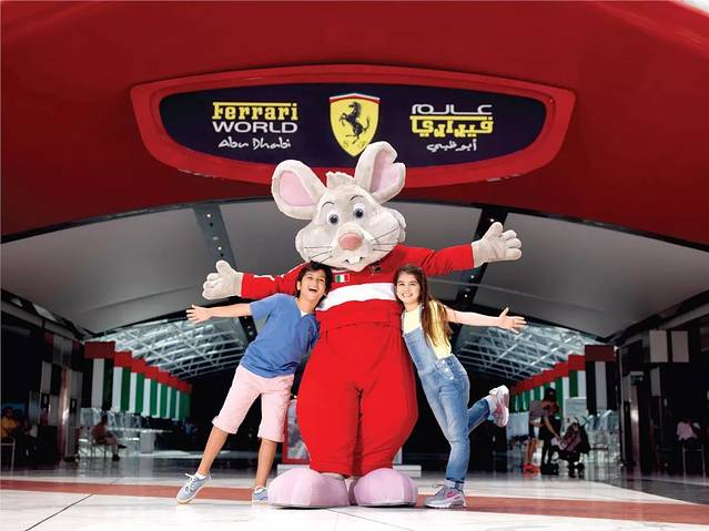 一进入园区大门,您就能看到几个可爱的卡通人物,他们整天都会在乐园内出现,作为主人翁欢迎着游客们的到来。他们就是以属地化特色以及法拉利汽车为主题进行的IP人物打造:沙漠骆驼Khalil、老鼠Benno以及精通汽车机械的机械师Berto,希望通过卡通形象和故事来增加主题乐园项目的完整性和趣味性,增加互动体验感。