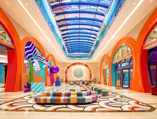酒店吃饭的地方在水晶全日餐厅,这里每日提供早餐,还提供自助晚餐,同样弥漫着海洋气息。我突然好想成为美人鱼,在属于自己的海洋里度过这个夏天。餐厅的品类超级多,有各式各样的海鲜,有精致的甜点,还有美味的烧烤等等,绝对可以满足你的胃~这里除了有中餐、西餐,甚至还有日式料理,据说位于15层最高层,拥有一家海拔1836米的山景海景绝佳视角餐厅,叫做山海轩中餐厅。海豚湾酒店定位于沉浸式海洋体验的亲子主题酒店,通过精心设计的海洋元素客房与配套设施,营造出畅游海洋的即视感。室外泳池区域分为成人池、儿童池、温水池,还有彩虹吧。水族吧(就是大堂吧),在水族墙后面,这里可以看到美人鱼表演。酒店里的水族墙、舞台、前台区域,设计成为了一个海底世界。在水族吧,你可以欣赏各种各样的鱼和海洋生物,尤其可以打动小孩子们的好奇心。毕竟,海底世界是充满神奇和乐趣的地方!透过玻璃,观赏着奇幻的海洋生物,这里同样也可以拍出美丽的照片,定格出在海洋之中最动人的你。住在海豚湾酒店,可以学习美人鱼潜水课程、亲子烘培课程,还有适合亲子互动的奇幻乐园、精彩刺激的奇幻营地以及让孩子乐此不疲的海缘宝库和元气站。