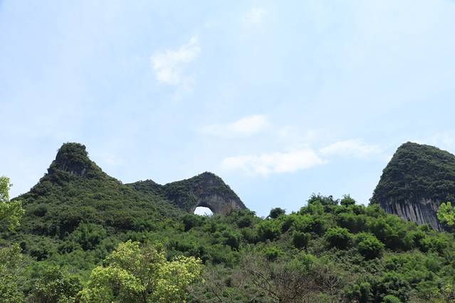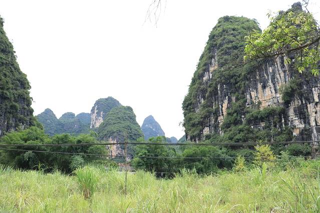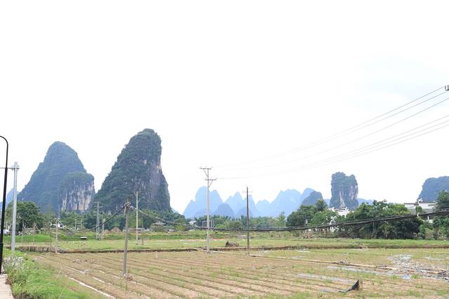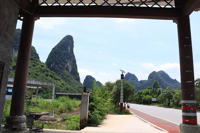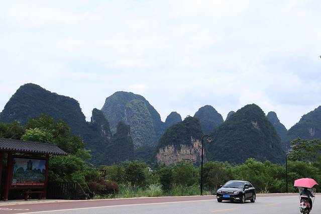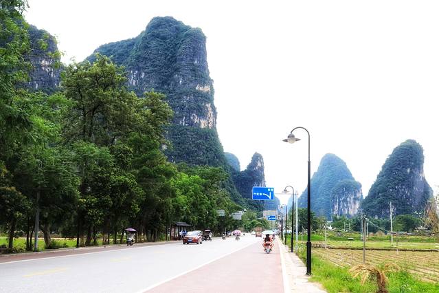 前面说过,我是从大门开始步行的。十里画廊一路有许多的景点,门票的我都没有进去。风景最好的该是在工农桥,这里也是一个路口,西北而上就是遇龙河。沿路南行,两边的山河家乡的比起来矮了许多,没有那么气势磅礴,但极具桂林山水的特色,矮而美、小而精。步行到月亮山,十里画廊也就算是结束了,返回的路上找个干净的草坪坐下吃了午餐。一路步行,有许多前来招揽生意的本地人,如果走累了可以搭上他们的电动车原路返回,也是很方便的。