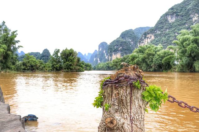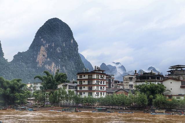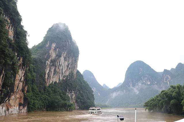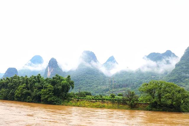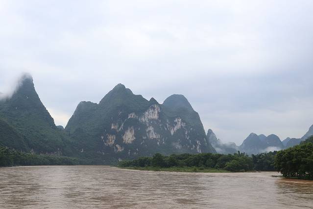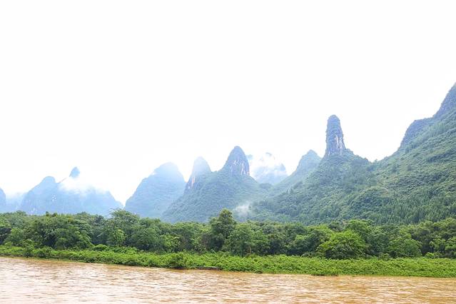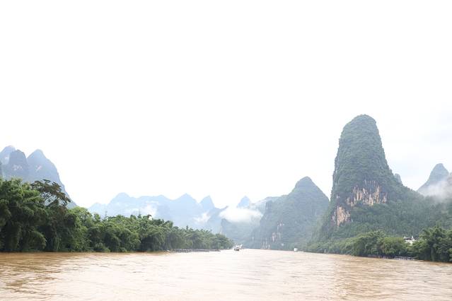 受汛期影响,漓江水变得很是浑浊。好在上天怜悯,让我看到了烟雨漓江。