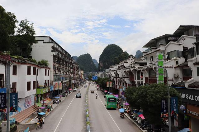 原计划是这样的,早上从县城坐车到遇龙河漂流(竹筏票里可选包含接送还是自行前往)、下午十里画廊。不料前一晚接到景区电话(也在意料之中),说是水位超过警戒线,只能取消。所有第二天我睡到9点,吃了早餐买好零食前往十里画廊。