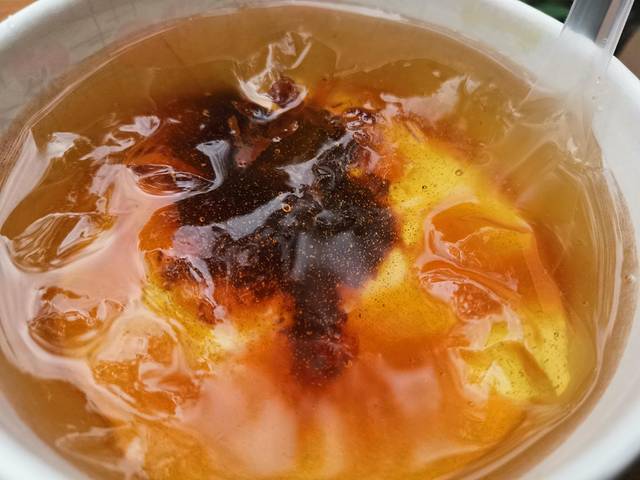 一块假鸡肉配一杯西米露,这样的搭配再安逸不过了!西米露里内容丰富,有绿豆、葡萄干、玫瑰糖、酸梅冰沙等,味道酸甜可口,传说中的夏天解暑神器!