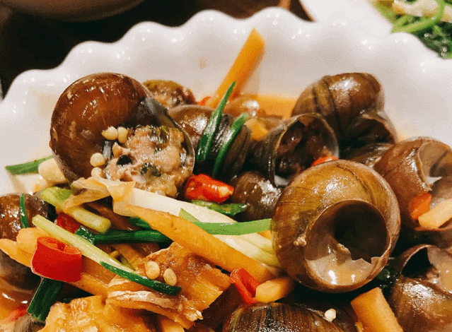 这里的田螺非常特别。首先是大 ,最大的差不多有乒乓球大小了;其次是它的味道,完全不像螺肉本身的味道。