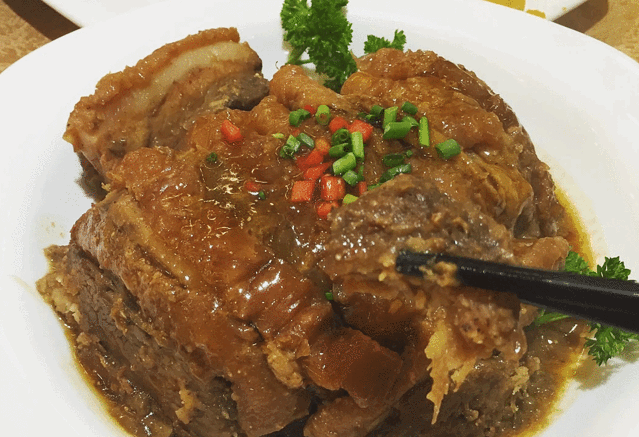 这道菜也不是一般的扣肉,不能按传统那种吃法随便吃,吃起来也有讲究,一般是一块肥肉一块芋头,芋头很粉很面,冲淡了肥肉的油腻味,让人感觉痛快。