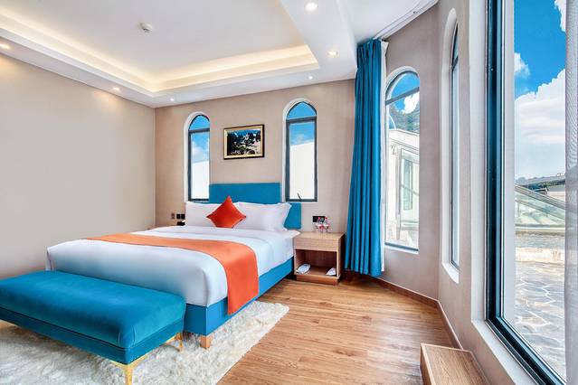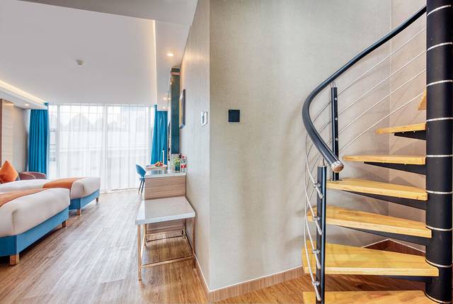 酒店办理入住也特别快,服务员还热情地帮我们把行李拿到了楼上。这次我们入住的Loft全景房,自动窗帘打开的瞬间,我就被眼前的景色给震惊住了。