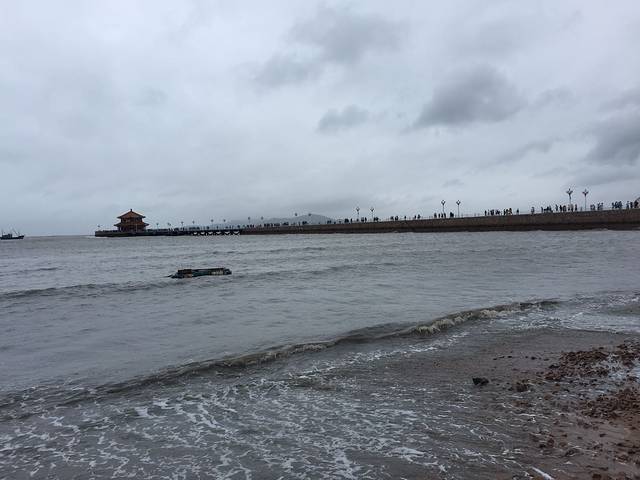 这里的游客相对八大关来说还是要多一些的,可能因为栈桥是青岛的标志性建筑吧,很多人都会来打卡,长长的走廊延申到海里,而且越往前走海风越大,加上雨刚刚暂停了一下,天还没有放晴,我们海没走到头,就被吹了回来,然后就又下雨了