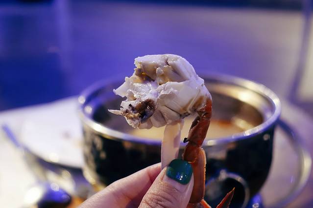 每人桌上也都有一个小火锅,可以自己涮着吃。推荐糟柏醋口味,海南本地特色,值得试一试。还有椰子鸡和花胶鸡锅底,养颜的哦~~