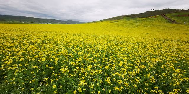 虽然罗平的油菜花我没有实地考察过,但是从图片中我知道,它很有层次,很有内容,很有观感;但是门源的油菜花猛一看,平铺直叙的一大片一大片,好似无灵性和美感,更没有阶梯层次可言,可是它却是最经看最耐看,越看越好看的那种,它具有铺天盖地的恢弘霸气。