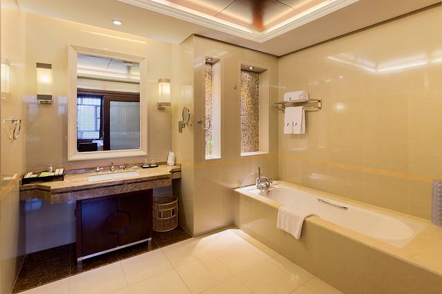 客房服务很到位,房间内还准备了果盘和茶具,很到位。我想很多人都会喜欢这种感觉,洁净而宽敞的浴室,我很喜欢,美美地拍上一波。