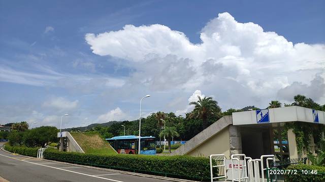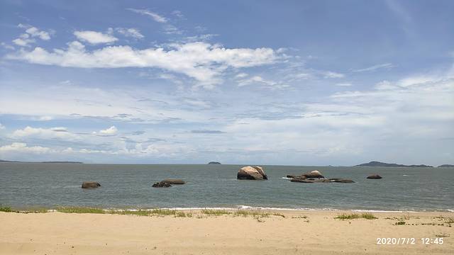 临近中午时分,走到一处休息亭子,强烈的光线照射在白色且光秃地礁石上,风裹着海浪不停地拍打礁石,倚靠在休息亭里的长座和柱子边,吹着海风,吃着荔枝,听着海浪拍打岸边的声音……清爽,舒适,就这样一直靠着吧,太美了,不想去鼓浪屿了……