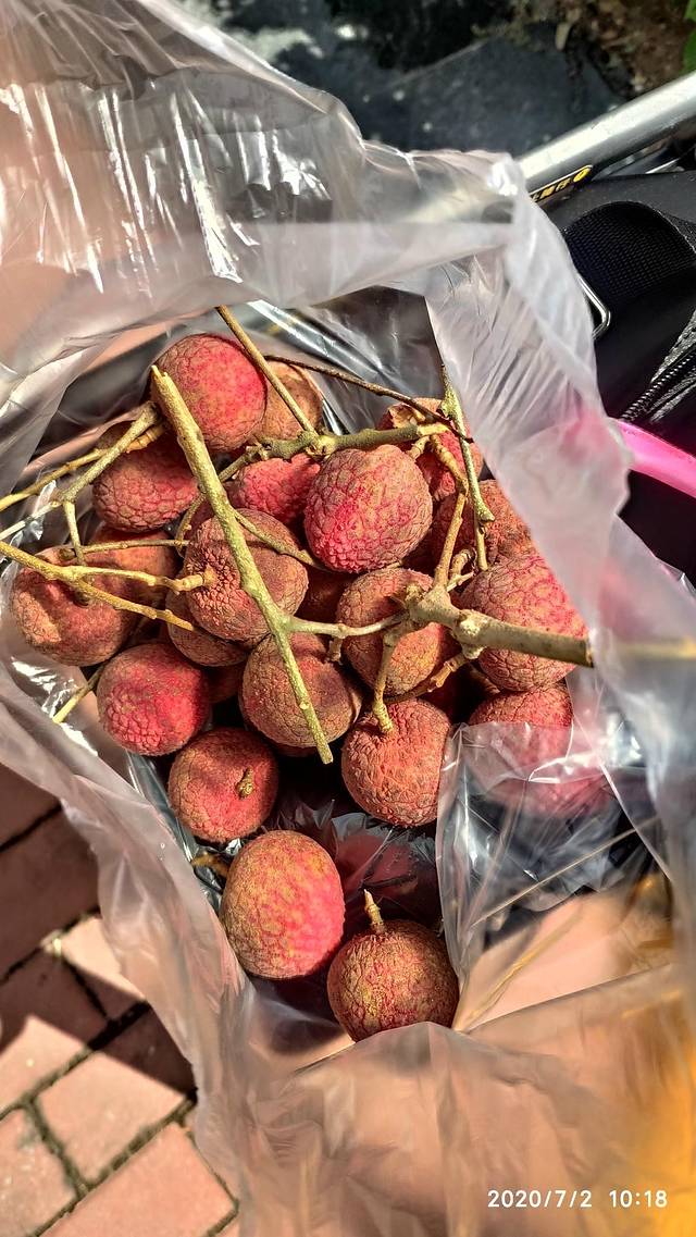 虽刚出门,但实在太热,提着三斤荔枝负重前行,不免辛苦。为了减负也得吃掉。一天吃了两斤,上火也心甘情愿。